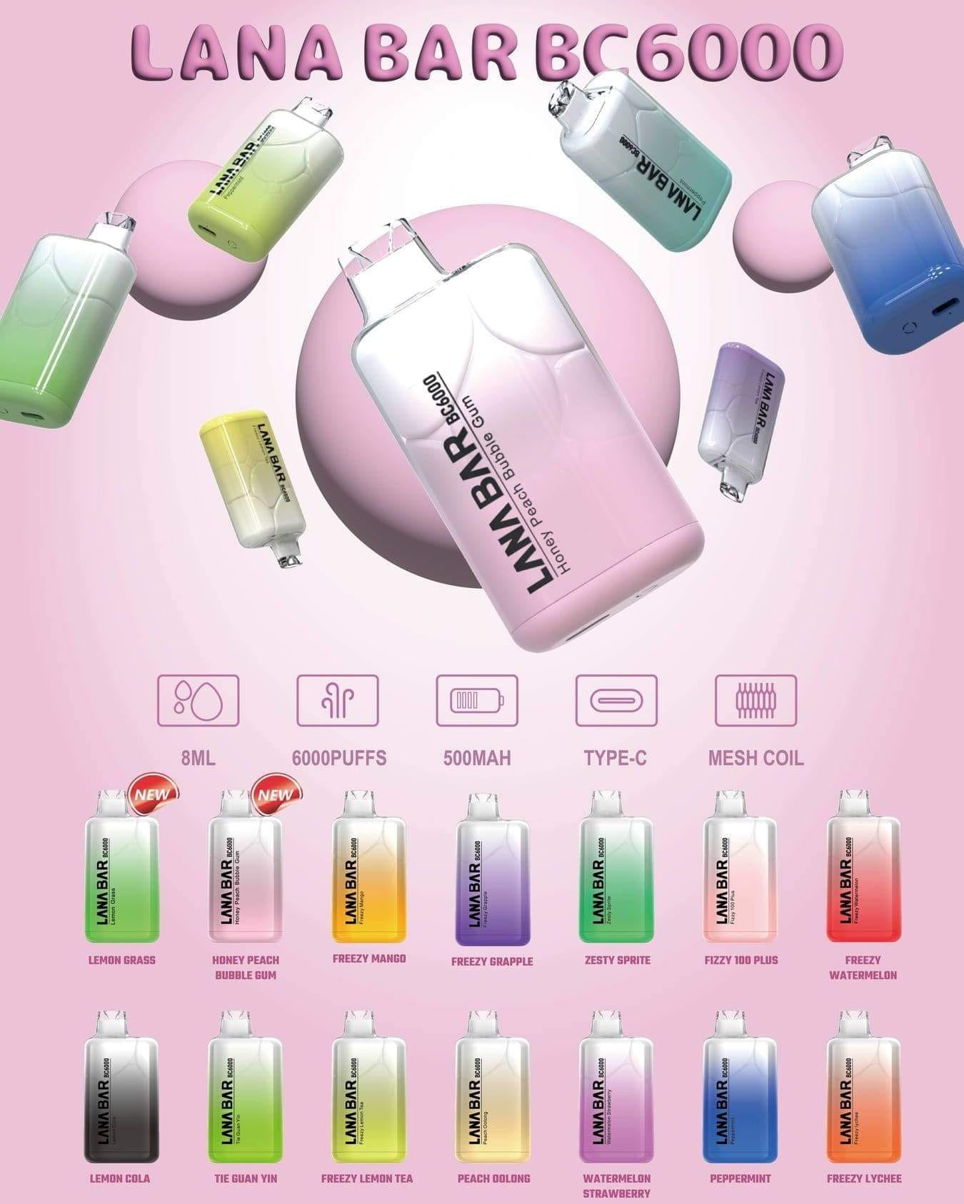 lana6000口一次性電子煙 大口數 可充電